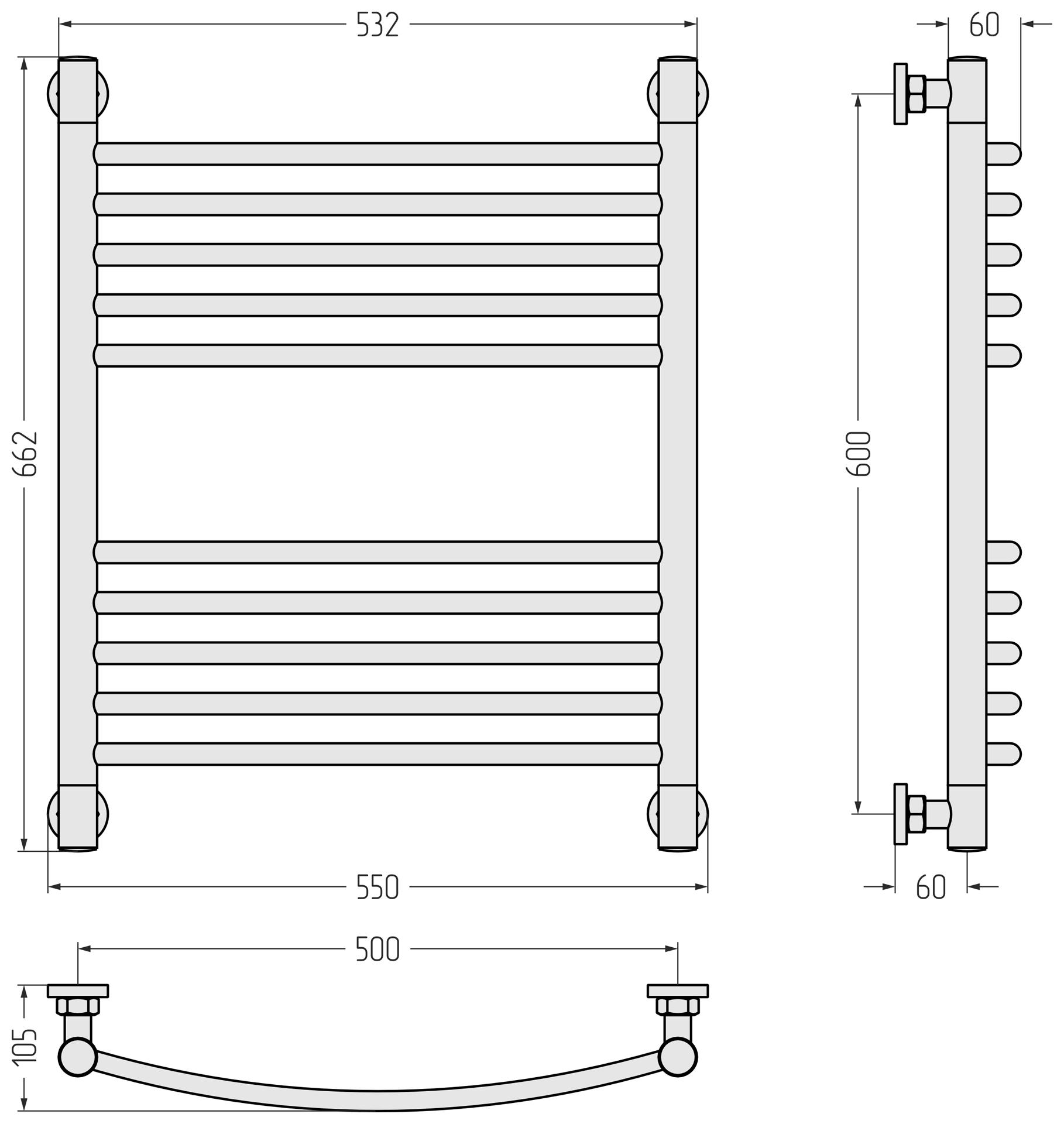 Водяной полотенцесушитель Сунержа Богема+ выгнутая 80x50 032-0221-8050